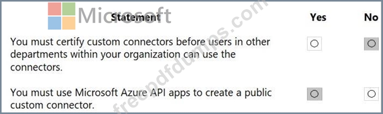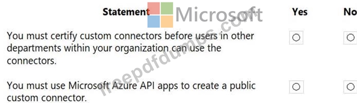 For each of the following statements, select Yes if the statement is true. Otherwise, select No.