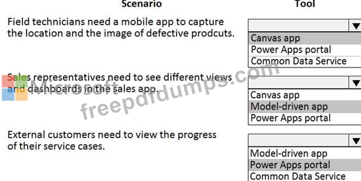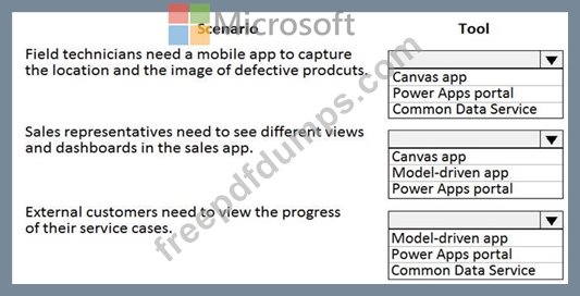 You need to recommend the appropriate types of Power Apps to use.