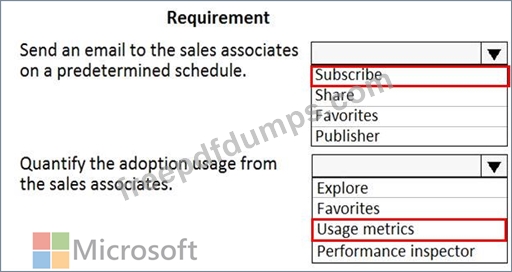 You are a regional sales manager for a large internet retailer. You create a series of Power BI reports and dashboards to help sales associates be more productive and increase sales.
