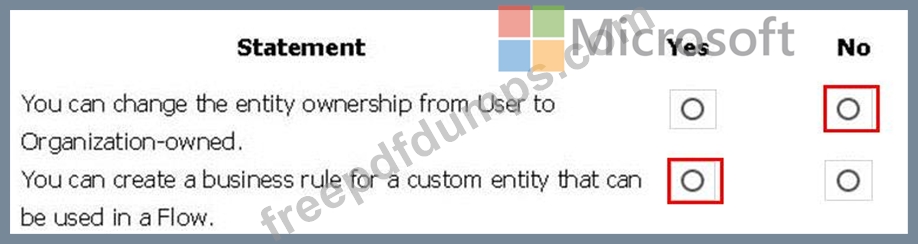 For each of the following statements, select Yes if the statement is true. Otherwise, select No.