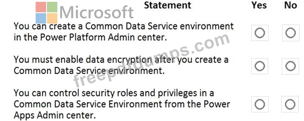 For each of the following statements, select Yes if the statement is true. Otherwise, select No.