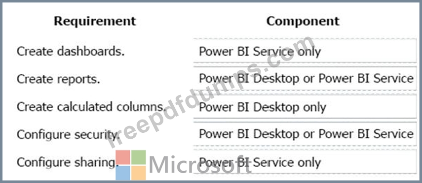The company's IT support team needs to know when to install Power BI Desktop on users' computers and where the Power BI Service will suffice to perform tasks.