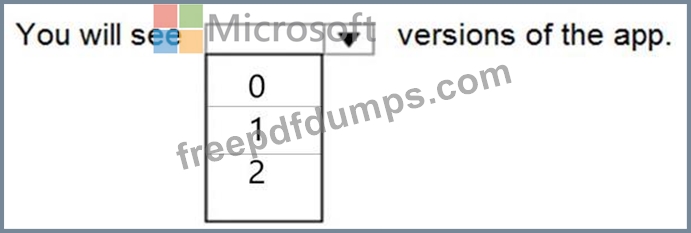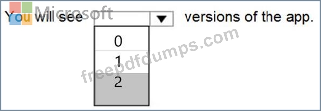 How many versions of the app are displayed in the Version tab for the app? To answer, select the appropriate option in the answer area.