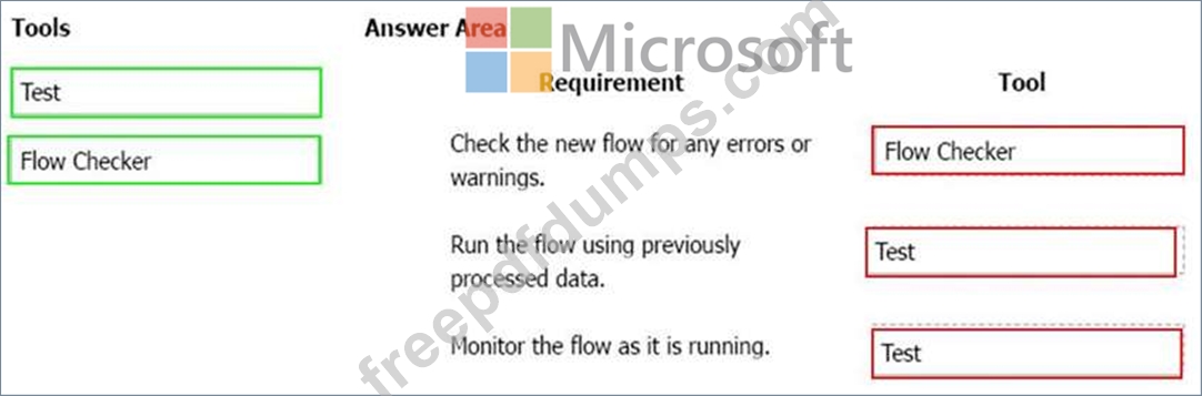 Which flow editing utilities should you use? To answer, drag the appropriate tools to the correct requirements. Each tool may be used once, more than once, or not at all You may need to drag the split bar between panes or scroll to view content.