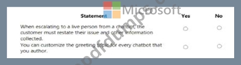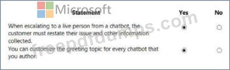 You are authoring a Power Virtual Agents chatbot for a company for each of the following statements, select Yes if the statement is true. Otherwise, select No.