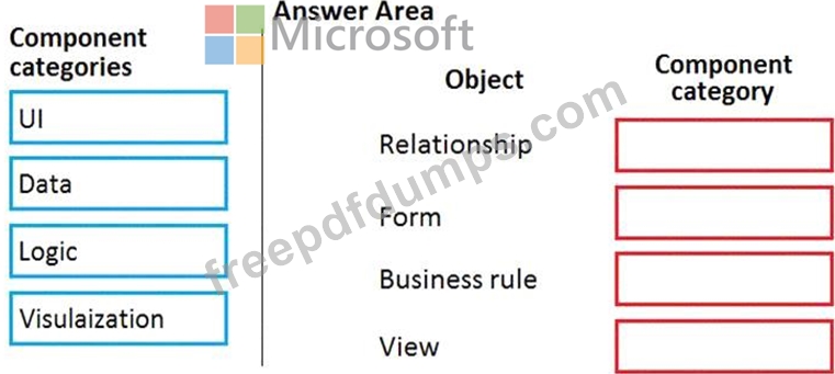 Which component categories should you use? To answer, drag the appropriate component categories to the correct objects. Each component category may be used once, more than once, or not at all. You may need to drag the split bar between panes or scroll to view content.