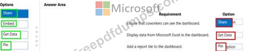 a. You need to share the Power Bl dashboard with coworkers and allow the coworkers to collaborate. What are two possible ways to achieve the goal? Each correct answer presents a complete solution. NOTE: Each correct selection is worth one point.