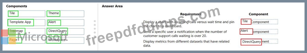 What should you recommend? To answer, drag the appropriate components to the correct requirements. Each component may be used once, more than once, or not at all. You may need to drag the split bar between panes or scroll to view content.