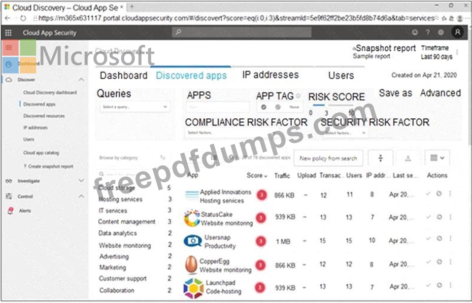 Which two actions should you perform in the Cloud App Security portal? Each correct answer presents part of the solution.