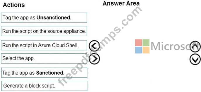 Which four actions should you perform in sequence? To answer, move the appropriate actions from the list of actions to the answer area and arrange them in the correct order.