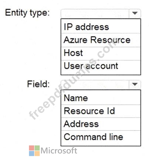 Which entity type and field should you use in a suppression rule? To answer, select the appropriate options in the answer area.