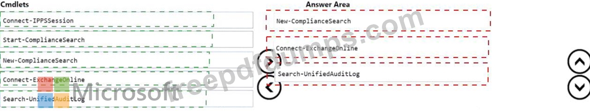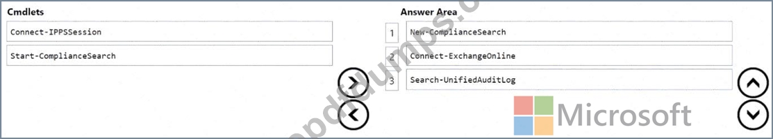 Which three cmdlets should you run in sequence? To answer, move the appropriate cmdlets from the list of cmdlets to the answer area and arrange them in the correct order.