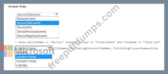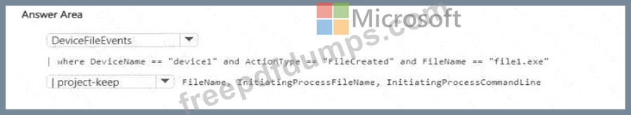 You need to create a KQL query that will identify when File1.exe was created. The solution must meet the following requirements: