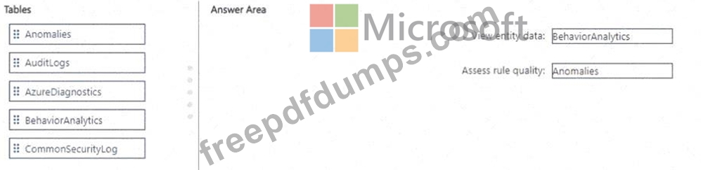 Which table should you use in KQL for each task? To answer, drag the appropriate tables to the correct tasks.