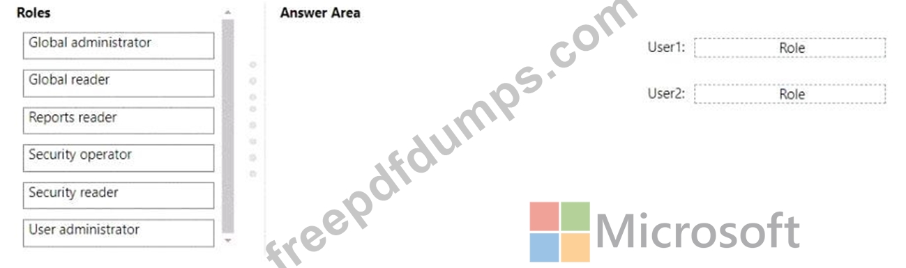 Which role should you assign to each user? To answer, drag the appropriate roles to the correct users. Each role may be used once, more than once, or not at all. You may need to drag the split bar between panes or scroll to view content NOTE: Each correct selection is worth one point.