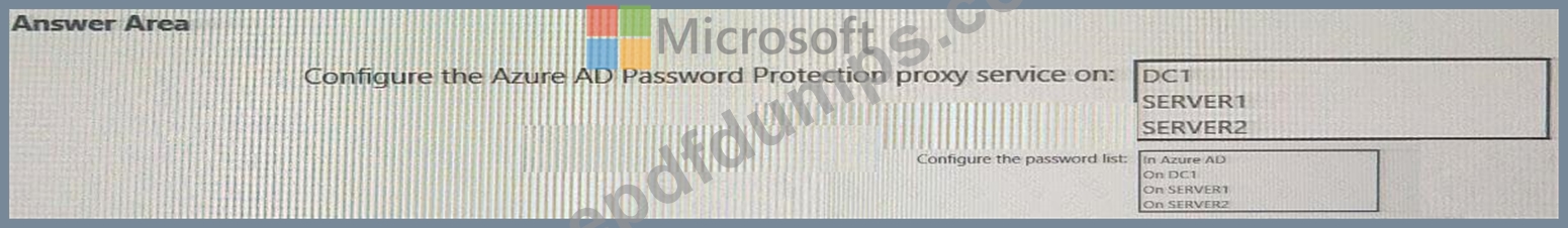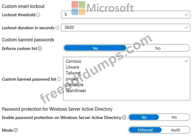 You configure Azure Active Directory (Azure AD) Password Protection as shown in the exhibit. (Click the Exhibit tab.)