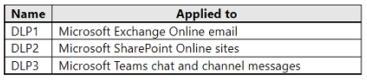 You have a Microsoft 365 E5 subscription that contains the data loss prevention (DLP) policies shown in the following table.