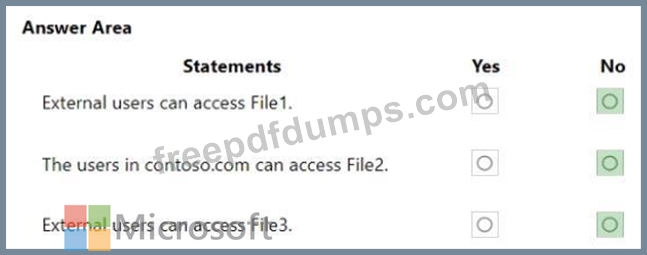 OneDrive stores files that are shared with external users. The files are configured as shown in the following table.