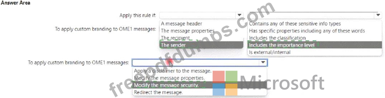 You need to create a Microsoft Exchange Online mail flow rule to apply 0ME1 to email.
