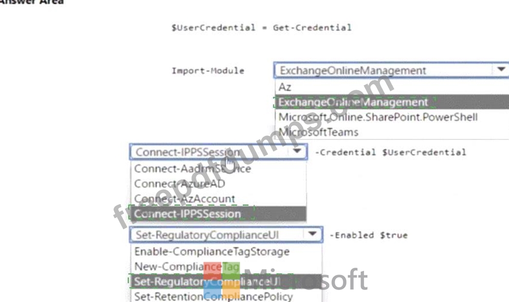 How should you complete the PowerShell script? To answer, select the appropriate options in the answer area.