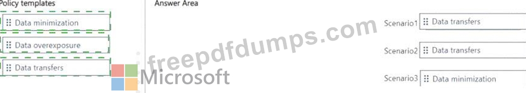 Which policy template should you use for each scenario? To answer, drag the appropriate policy templates to the correct scenarios. Each template may be used once, more than once, or not at all. Youmay need to drag the split bar between panes or scroll to view content.