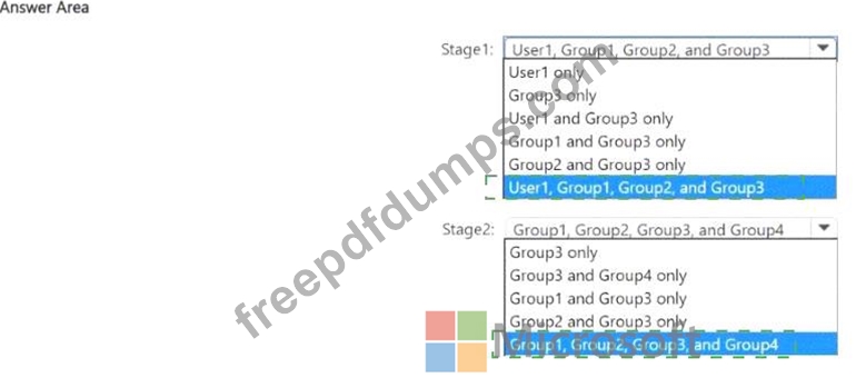 You ate creating a retention label named Retention1. You configure the following stages and reviewers for Retention1: