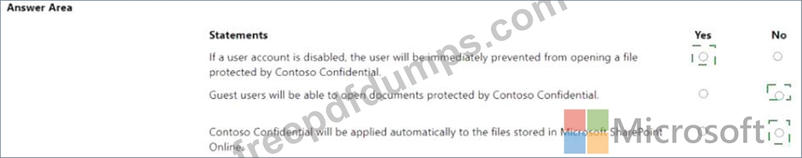 Contoso Confidential is configured as shown in the Configuration exhibit. (Click the Configuration tab.) The Encryption settings of Contoso Confidential are configured as shown in the Encryption exhibit. (Click the Encryption tab.) For each of the following statements, select Yes if the statement is true Otherwise, select No NOTE: Each correct selection is worth one point