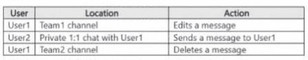 You have a Microsoft 365 ES subscription that uses Microsoft Teams and contains the users shown in the following table.