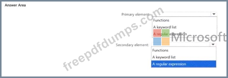 * The words "Employee", "ID", or "Identification" within 300 characters of the employee ID number What should you use for the primary and secondary elements? To answer, select the appropriate options m the answer area NOTE: Each correct selection is worth one point