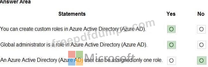 For each of the following statements, select Yes if the statement is true. Otherwise, select No.
