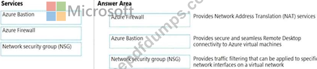 To answer, drag the appropriate service from the column on the left to its description on the right. Each service may be used once, more than once, or not at all.