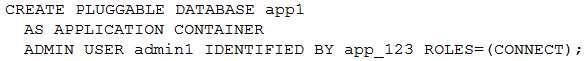 Oracle Managed Files (OMF) is enabled in a CDB and this command is successfully executed: