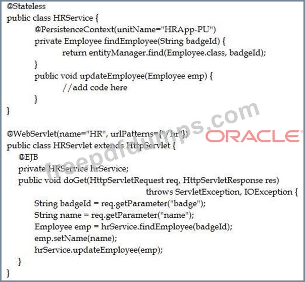 What code should you add to the body of the updateEmployeemethod in order to save pending changes to the database?