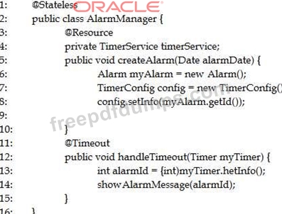 You are creating an Alarm management system. When you create a new alarm, you want it to create an alert that is triggered once at the specified time.
