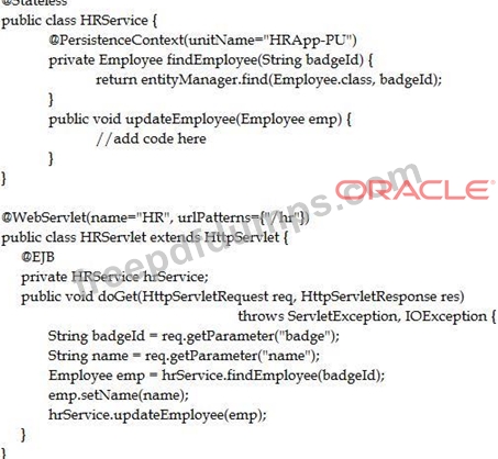 What code should you add to the body of the updateEmployee method in order to save pending changes to the database?