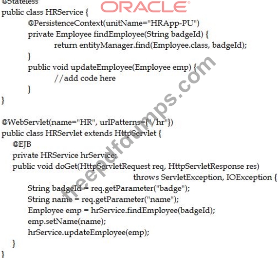 What code should you add to the body of the updateEmployee method in order to save pending changes to the database?