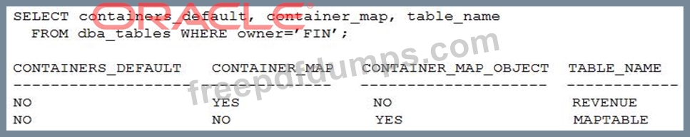 The SALES_APP application has a common table, FIN.REVENUE, in the two PDBs.