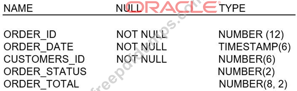 Examine the structure of the ORDERS table: