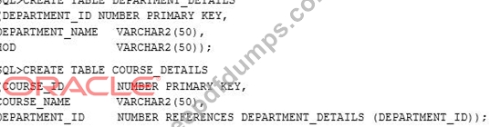 Examine the commands used to create DEPARTMENT_DETAILS and COURSE_DETAILS tables: