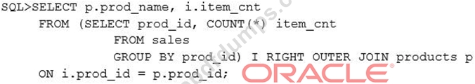 You issue the following query to display product name the number of times the product has been sold: