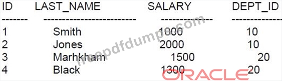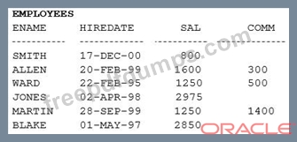View the Exhibit and examine the data in the EMPLOYEES table.