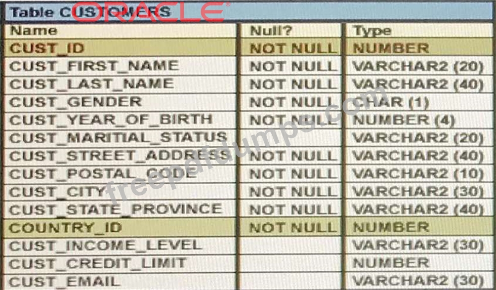 View the Exhibit and examine the structure of the CUSTOMERS table.