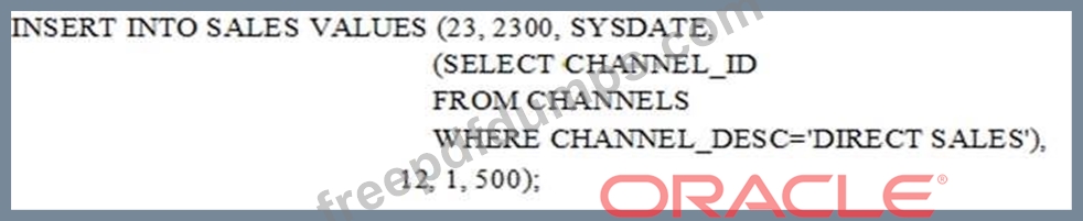 View the Exhibit and examine the description for the SALES and CHANNELS tables. (Choose the best answer.)