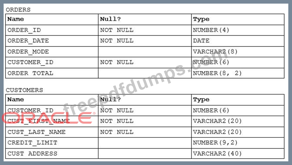 View the exhibit and examine the structure of ORDERSand CUSTOMERStables.