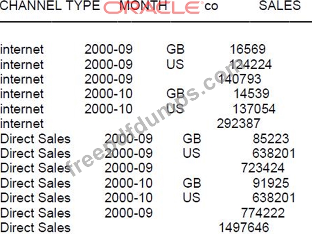 SELECT ch.channel_type, t.month, co.country_code, SUM(s.amount_sold) SALES