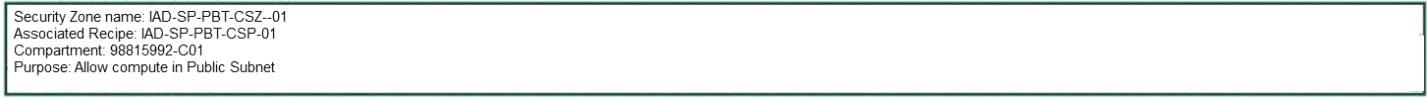 Create a Custom Security Zone Recipe named IAD-SP-PBT-CSP-01 that allows the provisioning of compute instances in the public subnet.