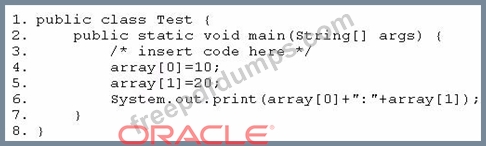 Given the code fragment: Which code fragment, when inserted at line 3, enables the code to print 10:20?