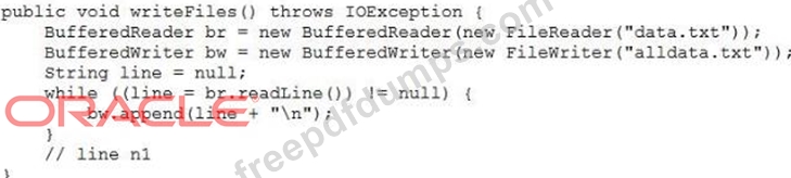 What is required at line n1to enable the code to overwrite alldata.txtwith data.txt?