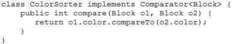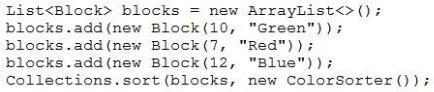 Which definition of the ColorSorterclass sorts the blocks list?