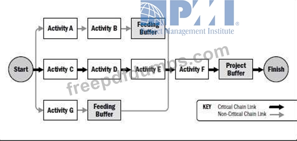 One buffer, placed at the end of the critical chain, as shown in Figure 6-19, is known as the project buffer and protects the target finish date from slippage along the critical chain. Additional buffers, known as feeding buffers, are placed at each point where a chain of dependent activities that are not on the critical chain feeds into the critical chain. Feeding buffers thus protect the critical chain from slippage along the feeding chains.